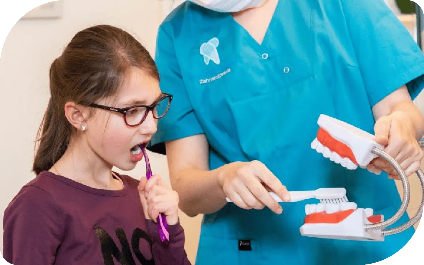 Mit Geduld, kindgerechter Sprache und einem sicheren Ablauf sorgen wir dafür, dass Kinder Vertrauen fassen und die Zahnarztpraxis als positiven Ort erleben. So entsteht früh eine Verbindung, die gesunde Zähne und gute Erfahrungen miteinander verknüpft.