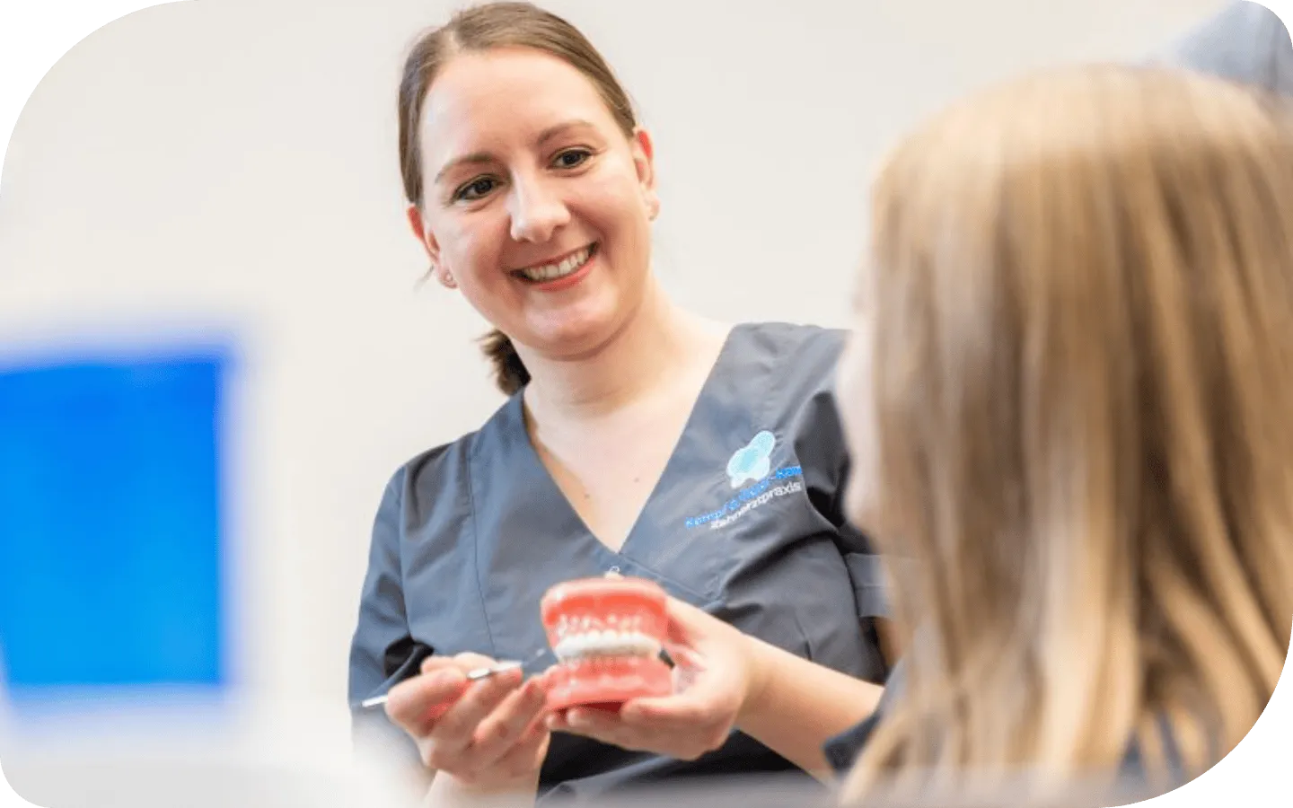 Kinder erleben einen Zahnarztbesuch ganz anders als Erwachsene. Deshalb braucht es in der Betreuung mehr als nur eine ruhige Stimme. In unserer Praxis übernimmt diesen Bereich Frau Vieler-Kampf, M.Sc.. Sie ist auf Kinder- und Jugendzahnheilkunde spezialisiert und verfügt über langjährige Erfahrung im Umgang mit jungen Patientinnen und Patienten. Zusammen mit Ihrem Team betreut Frau Kampf-Vieler, M.Sc. auch mehrere Kindergärten in der Region.